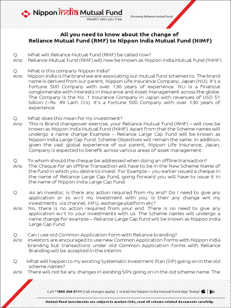 1st Holder Mandatory 2nd Holder 3rd Holder IWe have read and understood the contents of the. Regret the inconvenience caused. Useful for distributers at Nippon India Mutual.